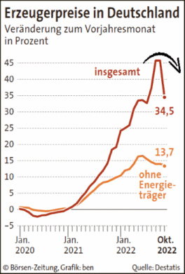 Nach dem Zusammenbruch der Inflationsszene sowie der Einschätzung der Zinsen mit jeweiligen Extremwerten folgt im kommenden Jahr die Rückkehr zur Normalität. So wie nach jedem Krieg ein irgendwie gearteter Frieden entsteht, also eine Normalität, so gilt dies auch für die Bewertung der ökonomischen Fakten. Aus dem genannten KGV entwickelt sich dann eine Rückkehr zur normalen Bewertung vor den entscheidenden Ereignissen und einem DAX von knapp über 16.000 im Dezember 2021. Das ergibt von der Bewertung und der Markteinschätzung her ein Potenzial von 20 % als Leitlinie. Spieltheoretisch heißt das: Die Rückkehr der Inflation und der Preise und mithin die Einschätzungen der Rezession verlaufen nicht parallel, sondern vielseitig. Jedes Faktum muss mit jedem anderen Faktum in Beziehung gesetzt werden, um die Wirkung auf die Einschätzungen am Kapitalmarkt zu erfassen. Lediglich eines ist klar erkennbar: So wie alle Aktien im genannten Schock ohne Ausnahme eingebrochen waren, suchen sie nun wieder den Weg zur Normalität zurück, mit dem gleichen Potenzial. Für den DAX bedeutet dies die genannten 20 %, aber für die größten Verlierer im DAX und MDAX geht es um Potenziale weit über 50 % von den Ausgangswerten der letzten vier Monate gerechnet. 20 % DAX-Gewinn von September bis Dezember waren der Anfang.